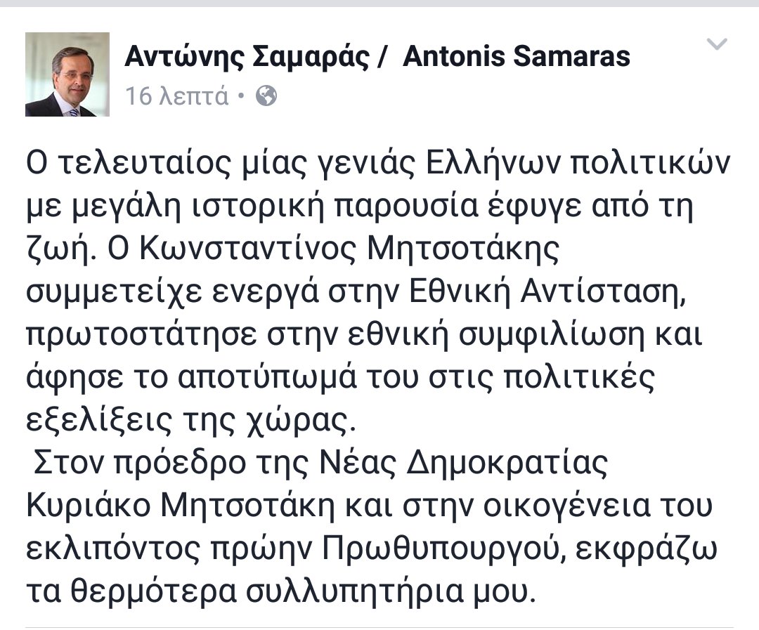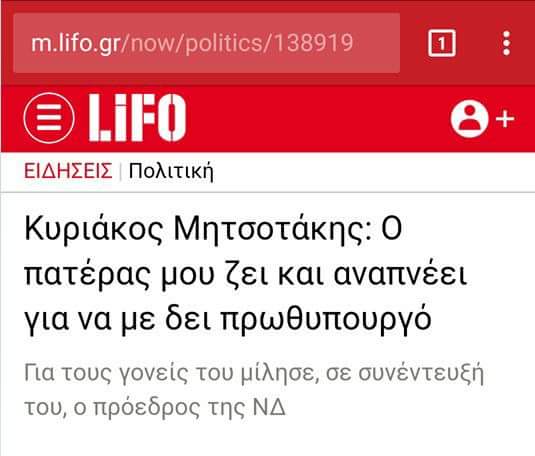 Πέθανε ο Μητσοτάκης, ειλικρινή συγχαρητήρια που τον προλάβατε εσείς και δεν σας πρόλαβε αυτός. Επιτέλους από σήμερα γεννιούνται παιδιά χωρίς Κ. Μητσοτάκη μπροστά τους.