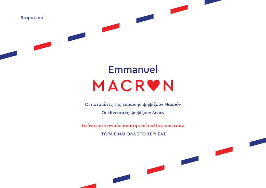 Οι Ποτάμιοι κολλάνε στην Ελλάδα αφίσες υπέρ του Μακρόν. Για περισσότερα ρωτήστε ψυχιάτρους.