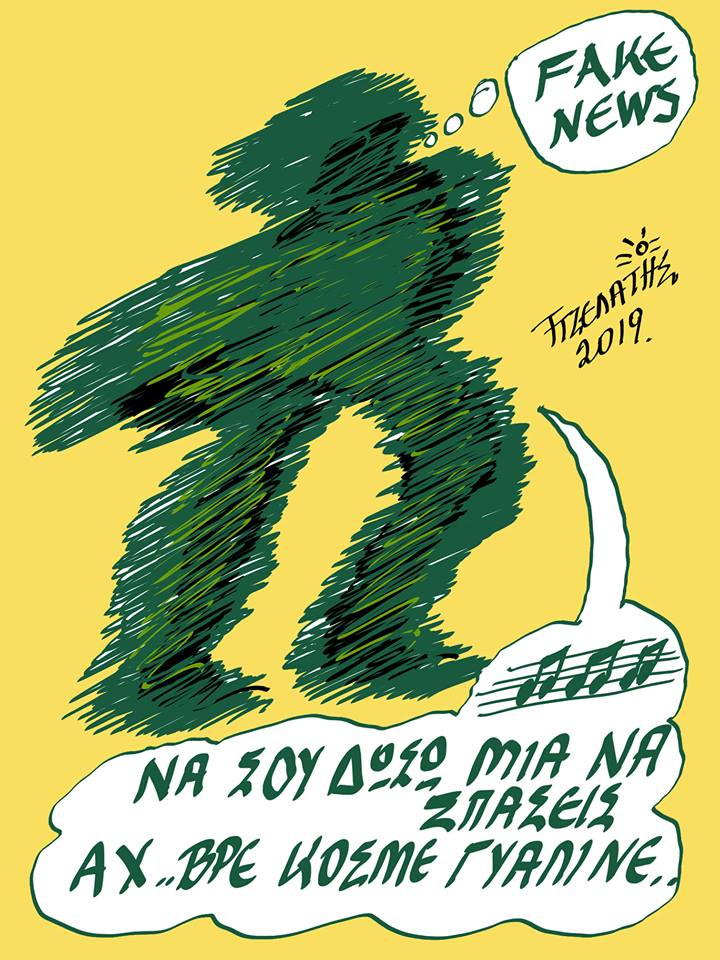 Εγώ θα έδινα τον Δρομέα του Βαρώτσου χωρίς να ζητήσω κανένα άγαλμα για αντάλλαγμα. Αντιθέτως θα τους έδινα και πέντ-έξι κασάτα για τη χάρη που μου κάνουν να με απαλλάξουν από το σημειωτόν με τζάμια.ΥΓΕΙΑ / Δεν πετάμε στα κοινωνικά δίκτυα ό,τι μας κατέβει στο κεφάλι, δεν πετάμε τίποτα, όχι επειδή φοβόμαστε τις μηνύσεις Σαμαρά ή τα αστεία του αναστημένου τηλεοπτικά Κωστόπουλου, αλλά επειδή τις δύσκολες αυτές ημέρες δεν πετάμε τίποτα. Απειλεί να γίνει πρωθυπουργός μας ο Κούλης. Φυλάμε τα πάντα, κυρίως μακαρόνια, υπάρχουν πολλά, εβαπορέ όμως ένα.