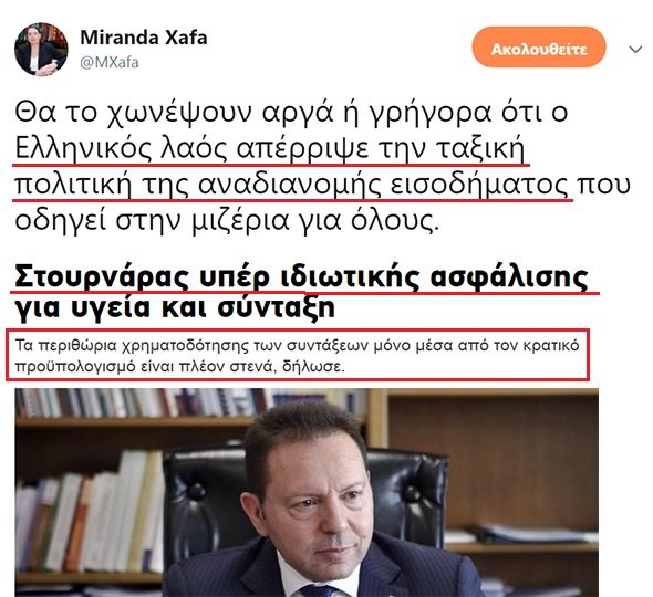 Τα πρώτα ευεργετικά μέτρα έφτασαν. Ήδη ο Στουρνάρας ανακοίνωσε ότι η κυβέρνηση Μητσοτάκη βάζει μπρος την ιδιωτική ασφάλιση, γιατί δεν μπορούν να πληρώσουν συντάξεις. Να μην ζούμε να μην τους θυμόμαστε. Για τις επιδόσεις της Χρυσής Αυγής, να ζούμε να μην τη θυμόμαστε.