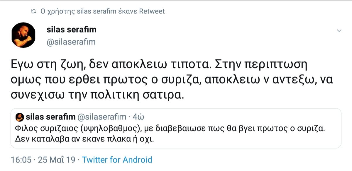 Ο Τσίπρας πονηρά σκεπτόμενος θα δώσει ένα 2% προβάδισμα στον Κούλη για να μην τον βγάλουν από πρόεδρο.