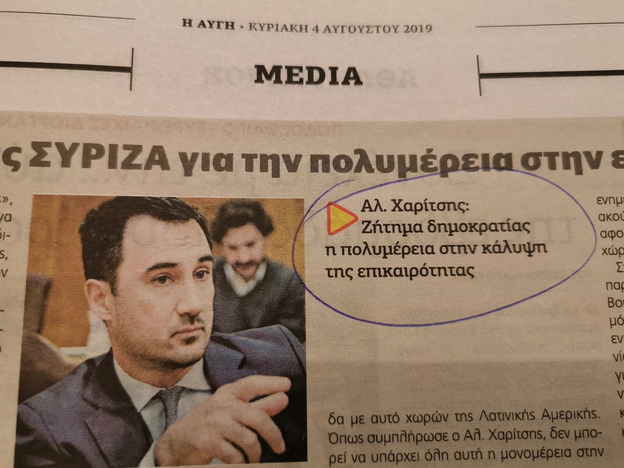 | Μετά την κανονικότητα, άλλος ένας όρος της Χημείας, η πολυμέρεια περιφέρεται στην ενημέρωση ντυμένη πολιτικά |